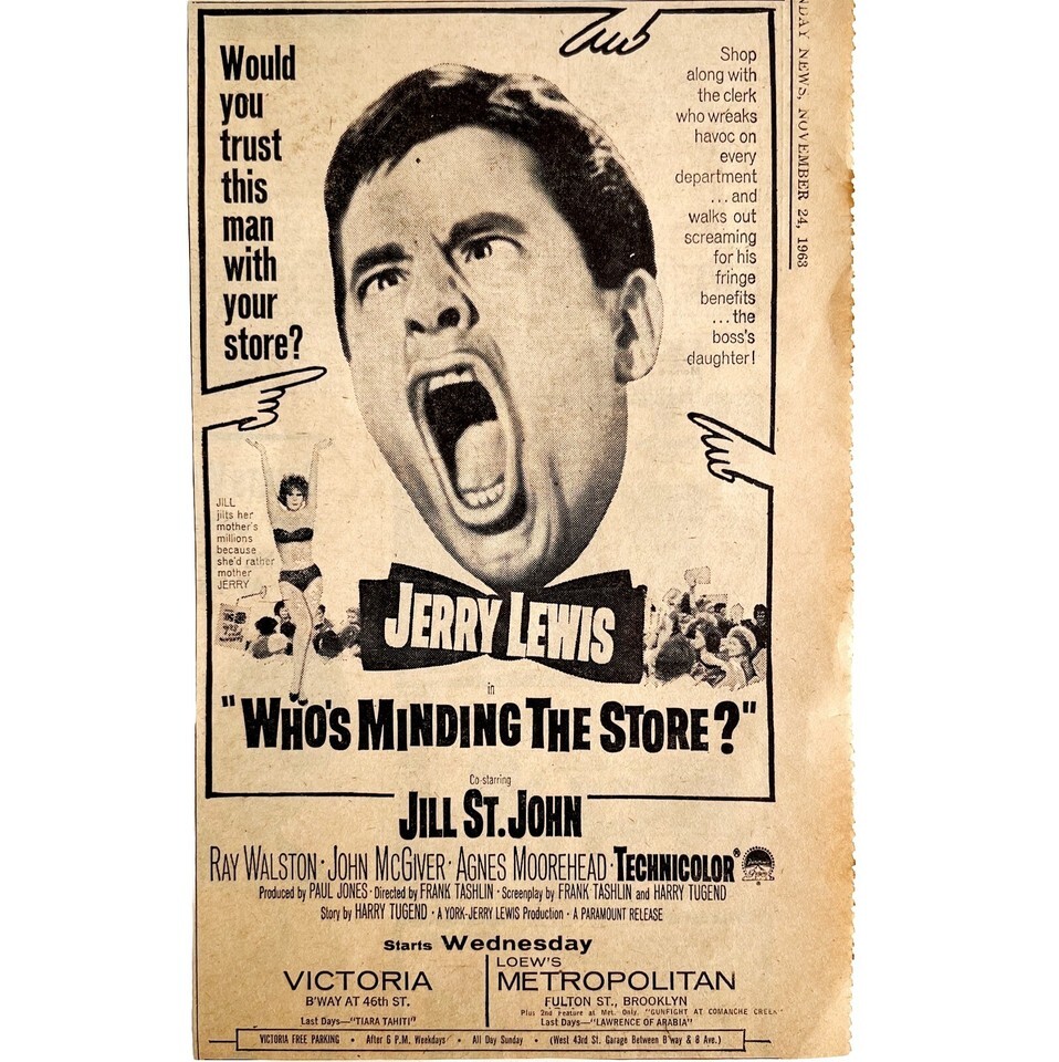 - Jerry Lewis Film Advertisement 1963 Who's Minding The Store Brooklyn NYC DWDD17