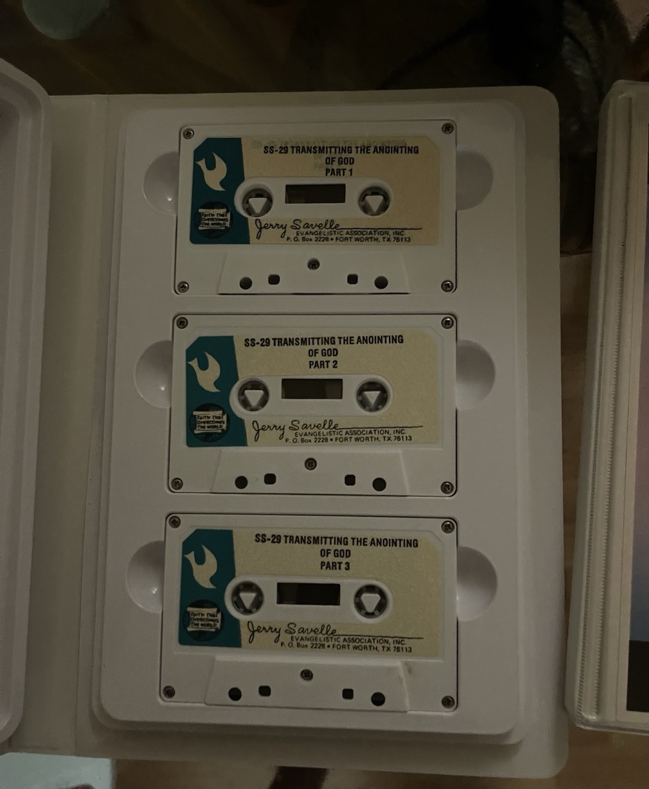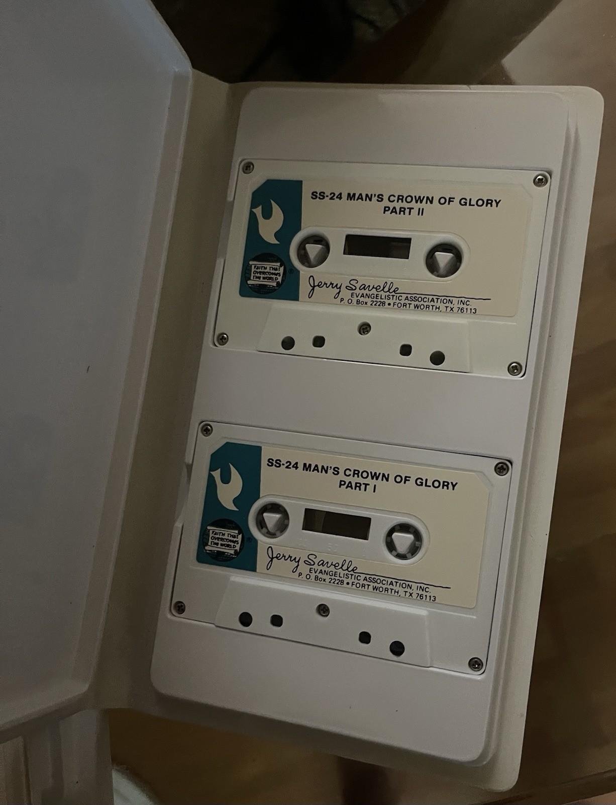 The Jerry Savelle Cassette Set Lot consists of two cassette tape sets man?s crown of glory and transmitting the anointing. featuring the artist J Savelle. This lot is ideal for music enthusiasts who appreciate the nostalgia and sound quality of cassette tapes. The release title indicates that this collection offers a unique and enjoyable listening experience for fans of J Savelle's preaching