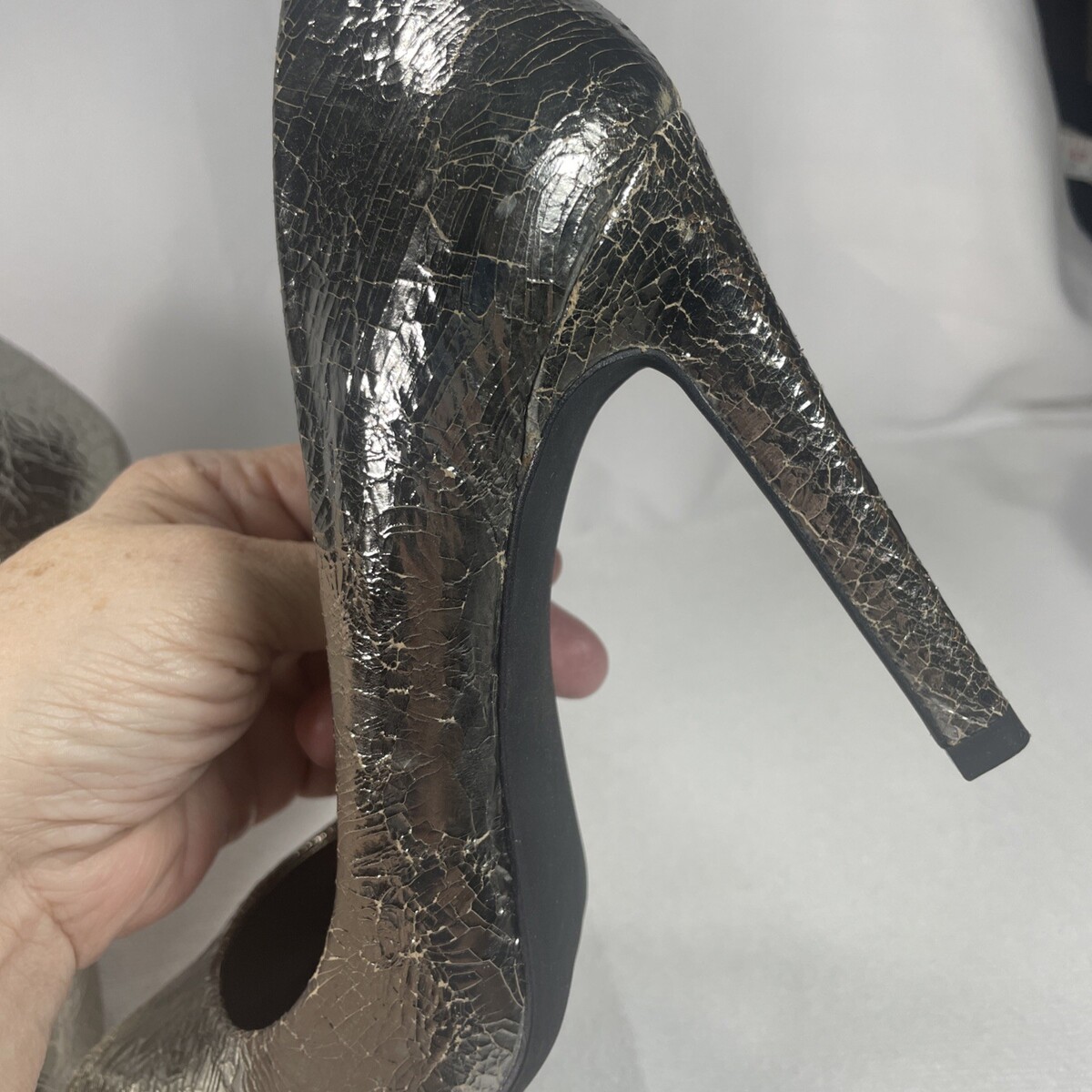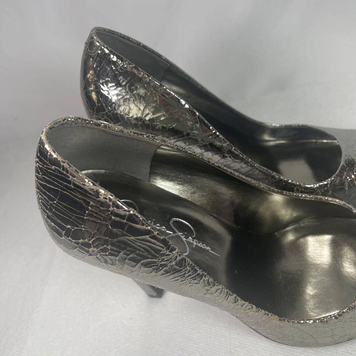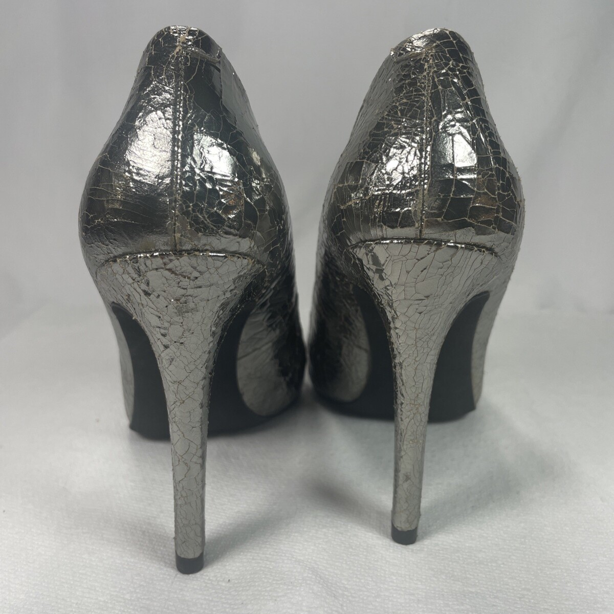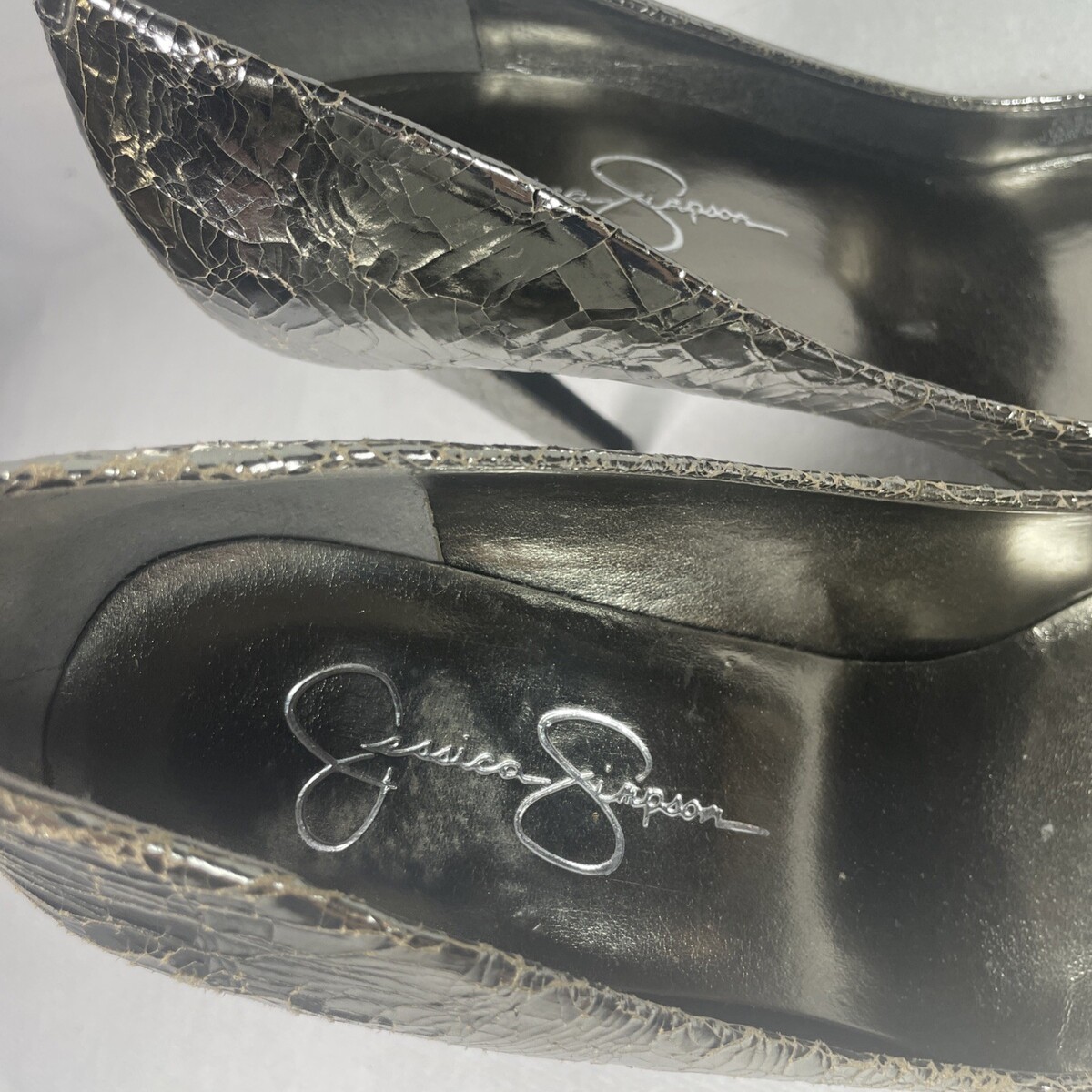 - Jessica Simpson Heels Size 7.5M Dark Pewter Cracked Metallic SILVER
