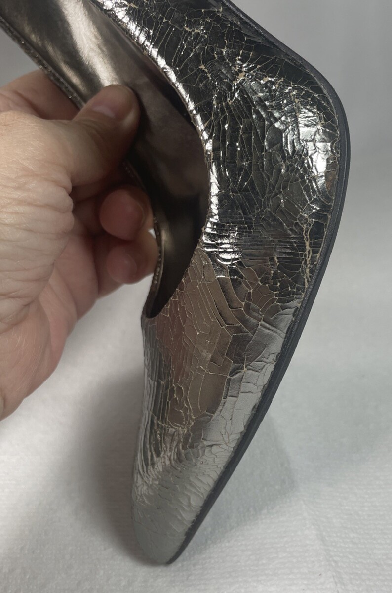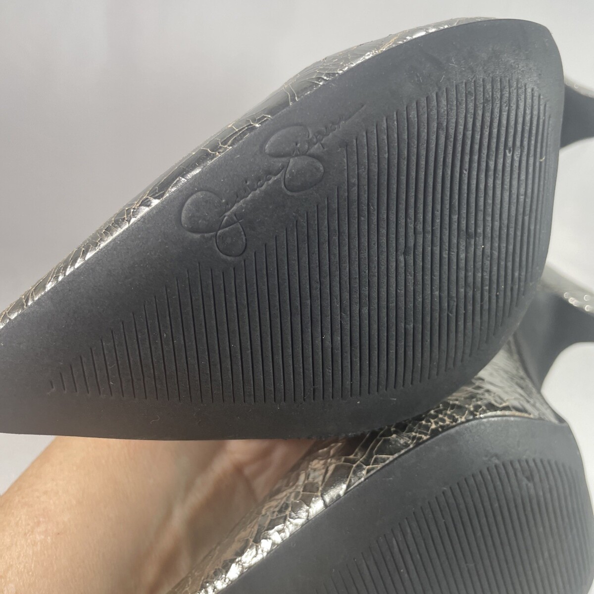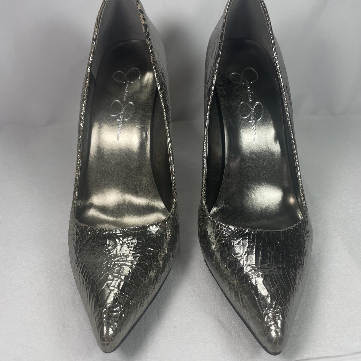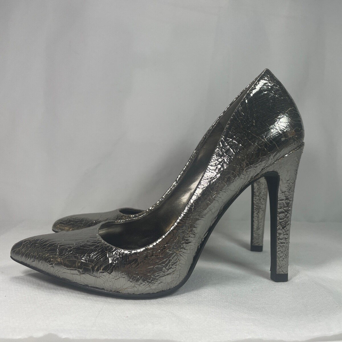 - Jessica Simpson Heels Size 7.5M Dark Pewter Cracked Metallic SILVER