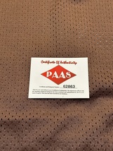Jim Brown Signed NFL Cleveland Browns Adult XL Football Jersey in black sharpie and the jersey has been well kept over the years. Jersey comes with a COA and matching hologram from PAAS Authentication that can be verified on the website. Jersey has a small hole on the top back of the jersey as seen in the photos above. Any questions send me a message anytime.