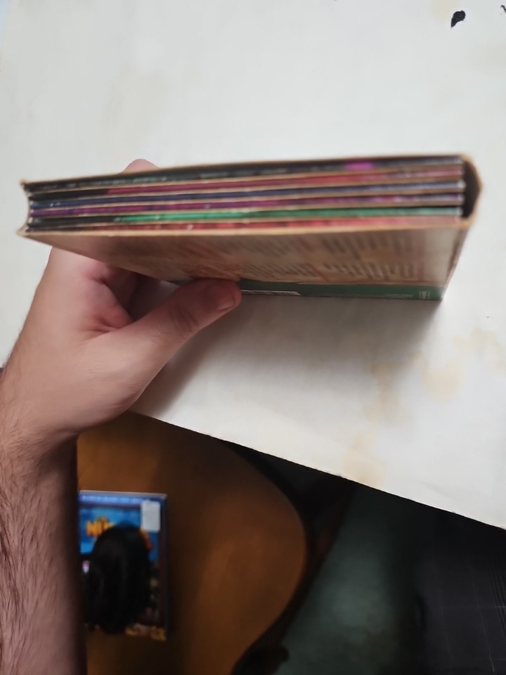 The cds , inlay and cd holders are in great shape. The cardboard case has notable wear and has a wrinkle of wear on one side. You can see it in the second pic.
