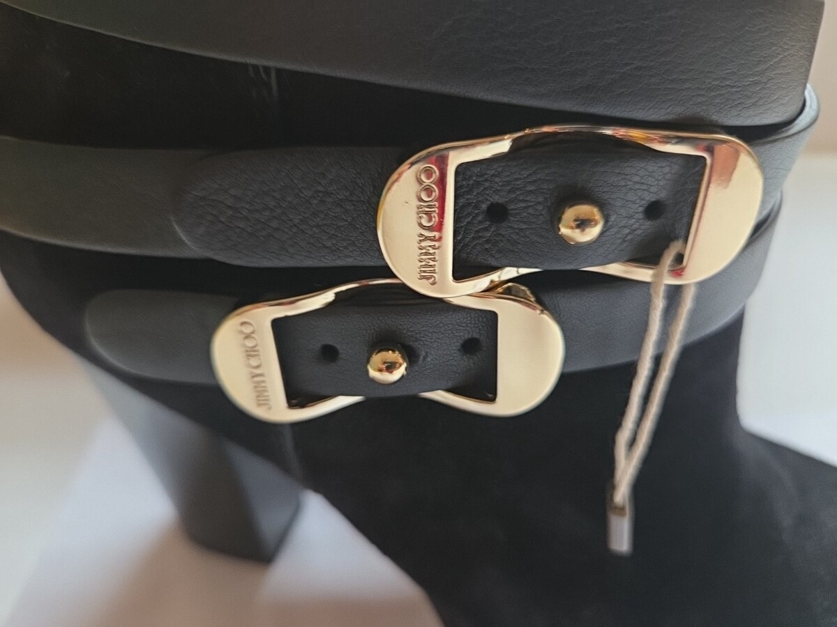 - Jimmy Choo Melba Black Suede Buckled 3.5" Block Heel Ankle Bootie 10.5/40.5 New