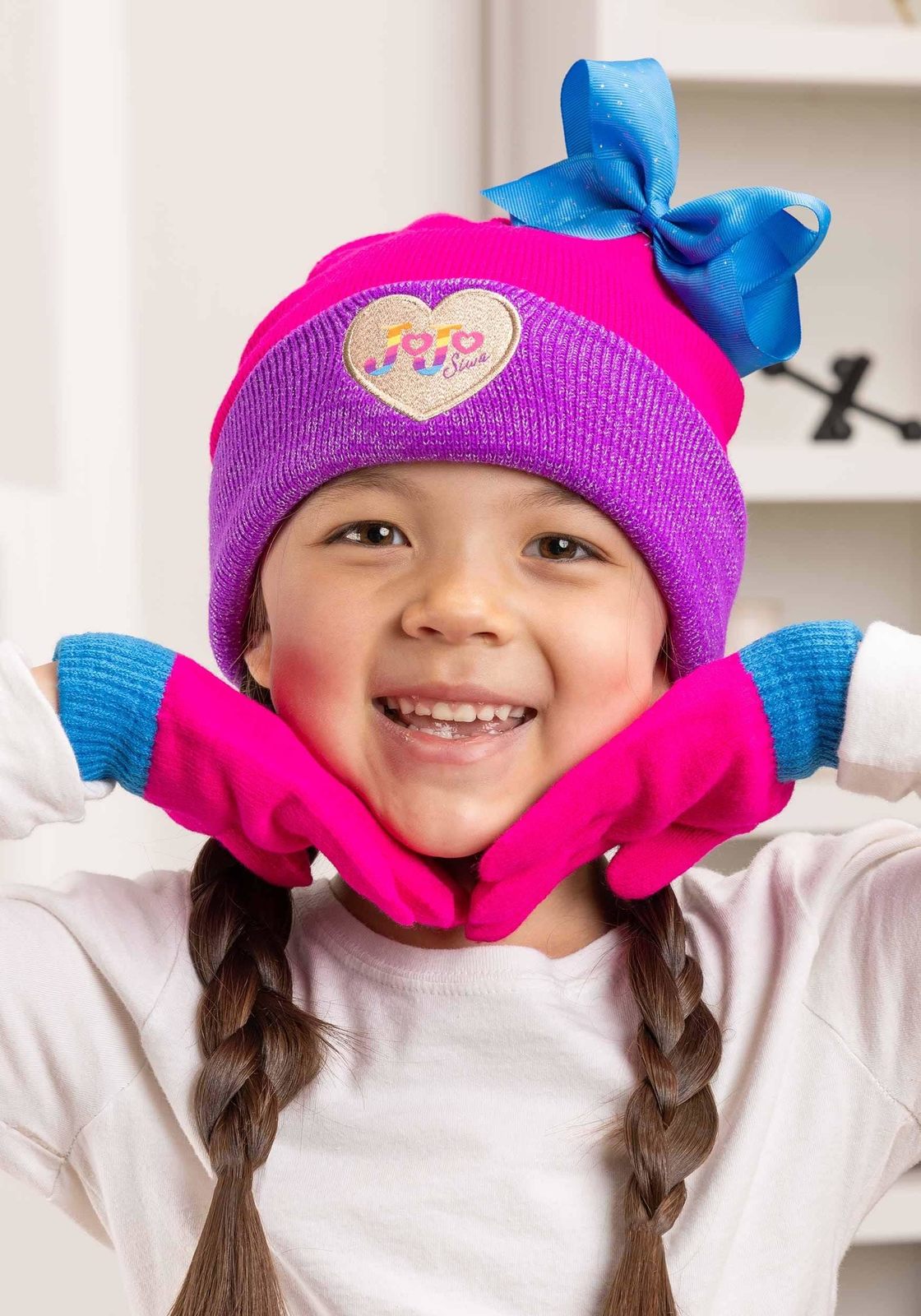 - JoJo Siwa Kids Beanie with Bow and Gloves Set Standard Purple, Pink