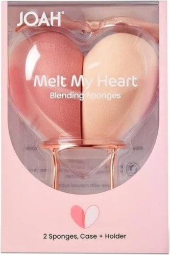 Experience the JOAH Melt My Heart Blending Sponge Set, your ideal companion for all makeup blending tasks. It comes with a heart-shaped case, holder, and two flexible sponges, making it perfect for gifting and travel. The round side effortlessly blends large areas, while the flat edge excels in contouring.