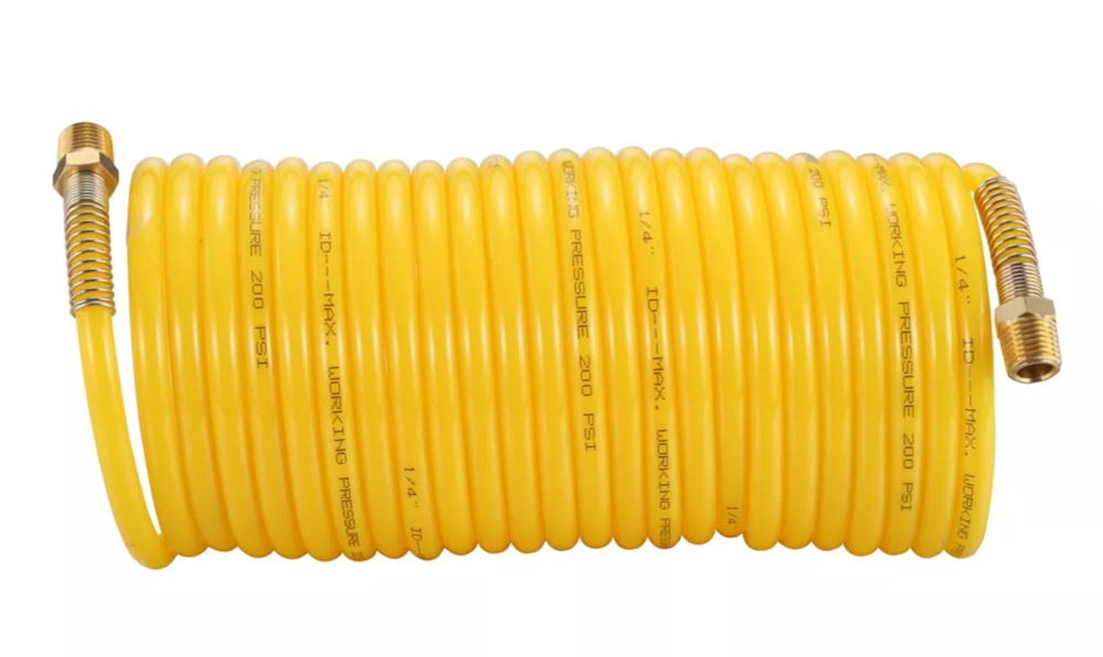 The JobSmart Recoil Hose is made of oil and abrasion resistant nylon to provide better performance, even at low temperatures. With a recoil design that automatically retracts, and brass fittings to reduce twist, this 25 ft. hose is built for long lasting use.