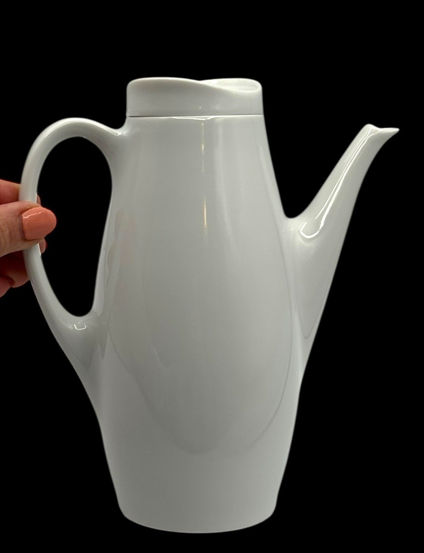 - Johann Haviland White Coffee Tea Pot Bavaria Germany 7.5" MCM Deco Scandinavian