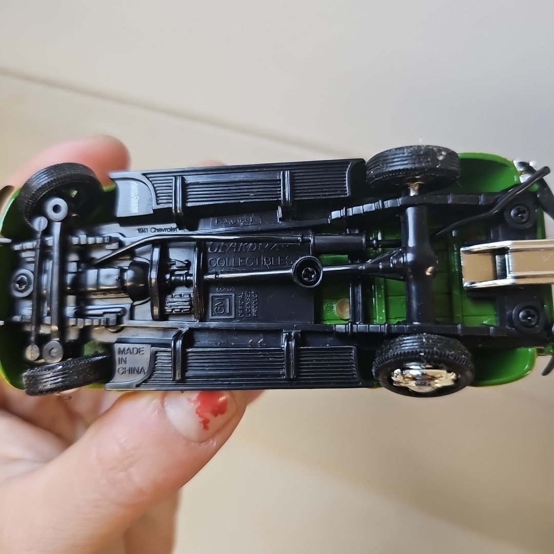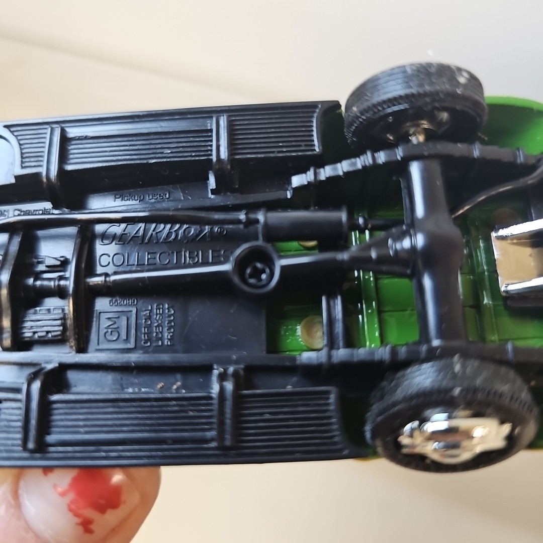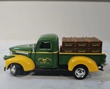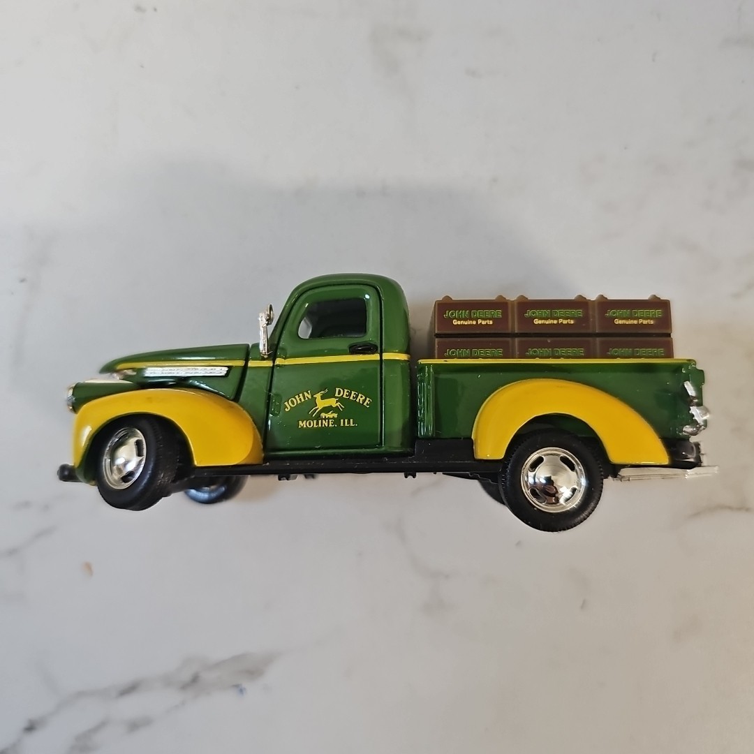 The product is a collectible 1/43 scale diecast truck modeled after a 1941 Chevy parts truck, featuring two 1950's John Deere gas pumps by Gearbox Toys Alpha Intl. This unique set is themed around agriculture and is an original reproduction, making it a valuable addition to any John Deere or vintage truck collection. With detailed craftsmanship and a focus on authenticity, this collectible is sure to appeal to enthusiasts of classic vehicles and agricultural memorabilia.