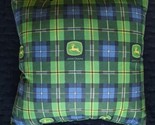 John Deere Tractor Plaid Throw Pillow 15"x15" Green Blue Yellow