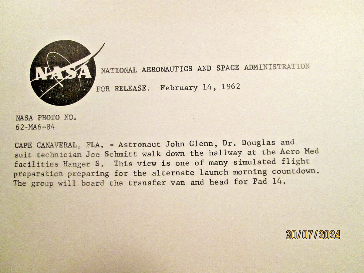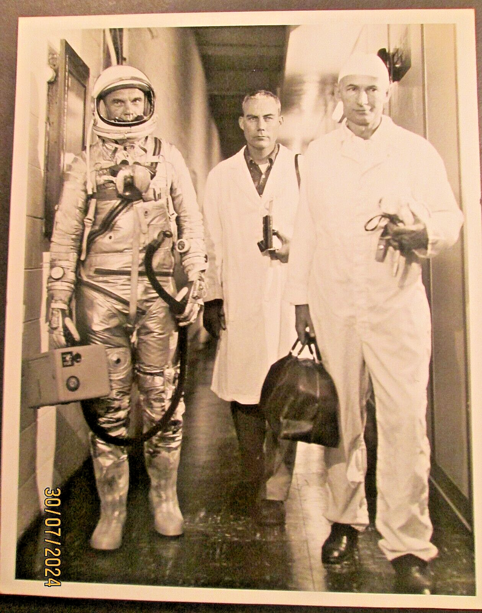 JOHN GLENN:ASTRONAUT (ORIG,1962 VINTAGE SPACE RACE NASA,PRESSPHOTO COLLECTION) FROM NASA,ARCHIVE FILES FROM PRIVATE COLLECTOR COLLECTION (NOTE: ALL ORIGINAL VINTAGE WITH STAMPS ON BACK OF PHOTO)