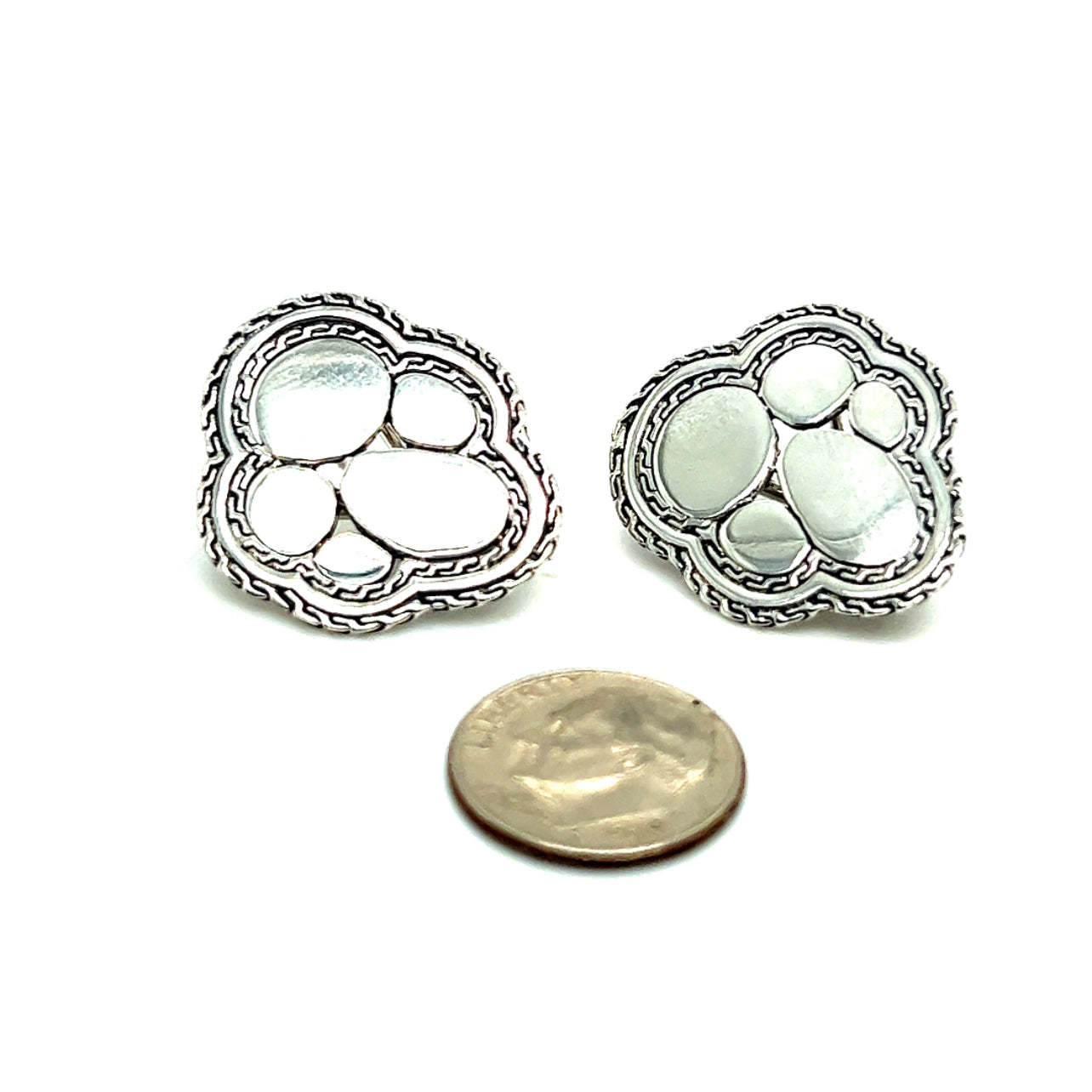 John Hardy Estate Kali Pebble Omega Back Earrings Silver JH60