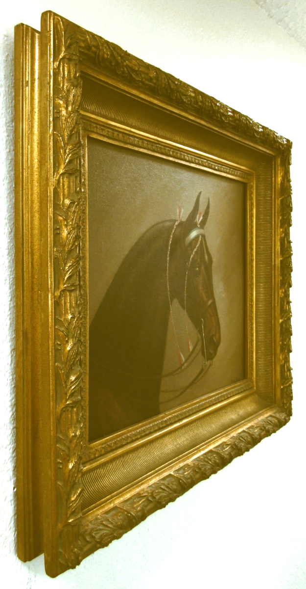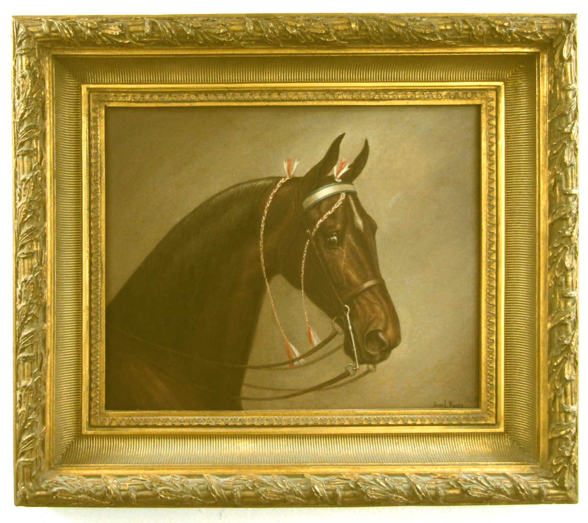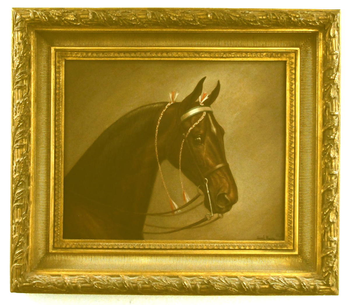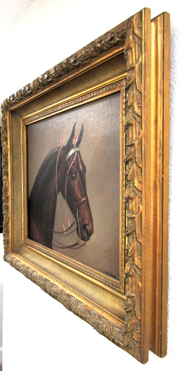 - John L. Baker Brown Horse Head Daisy Mae's King April 1952 Gilt Gold Framed Oil