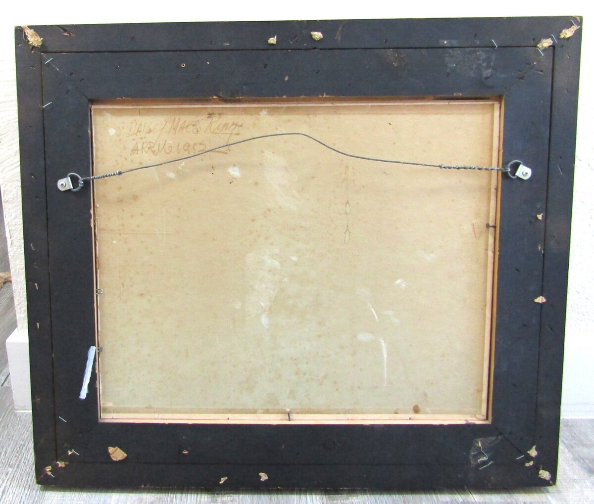 This painting by John L. Baker Brown Horse Head titled "Daisy Mae's King" April 1952 features a realistic depiction of a horse in a gilt gold framed oil medium. Signed by the artist, this one of a kind (OOAK) piece is handmade and produced using acrylic painting on board in the United States during the 1950s. Measuring 30 inches in length and 26.25 inches in height, this post-war era artwork captures the essence of animal theme with intricate details and vibrant colors.