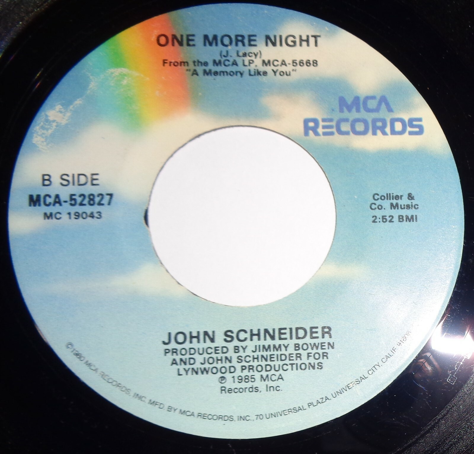 - John Schneider 45 RPM Record- One More Night / You're The Last Thing I Needed B5