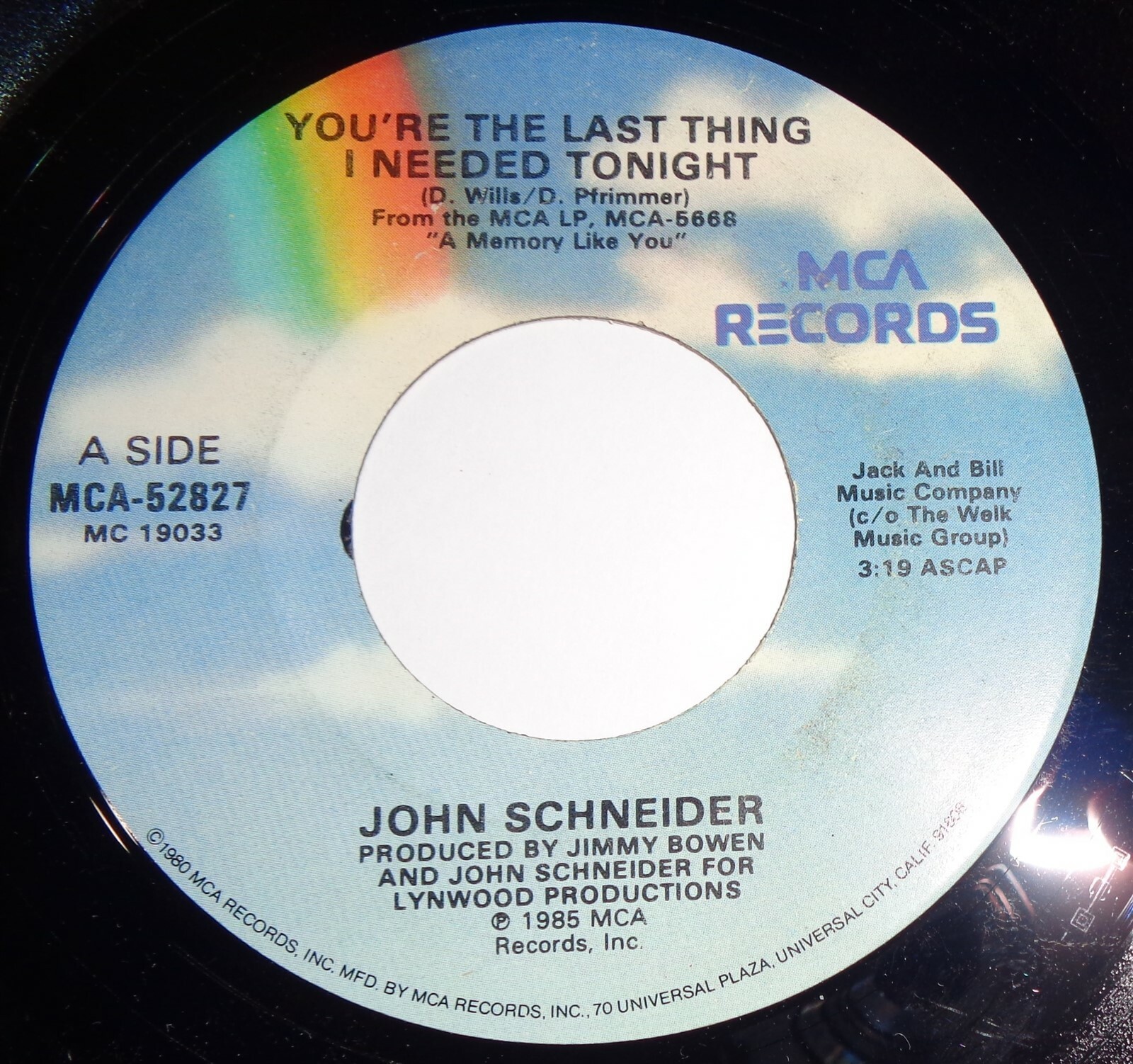 John Schneider 45 RPM Record- One More Night / You're The Last Thing I Needed B5