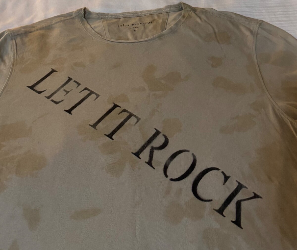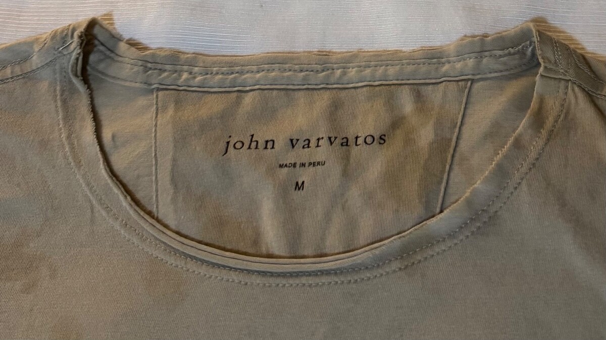 - John Varvatos T-Shirt Men Fossil Grey Let It Rock Raw Edge Short Sleeve M NWOT