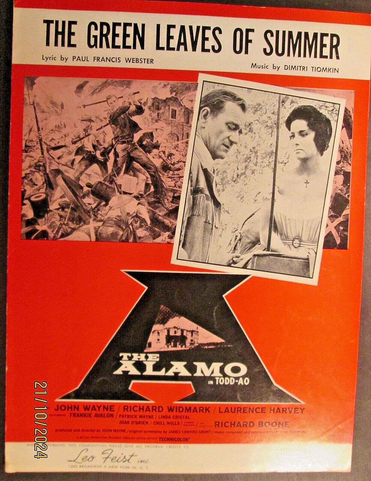 - JOHN WAYNE: (THE ALAMO) ORIG,1960 MOVIE SHEET MUSIC (CLASSIC)