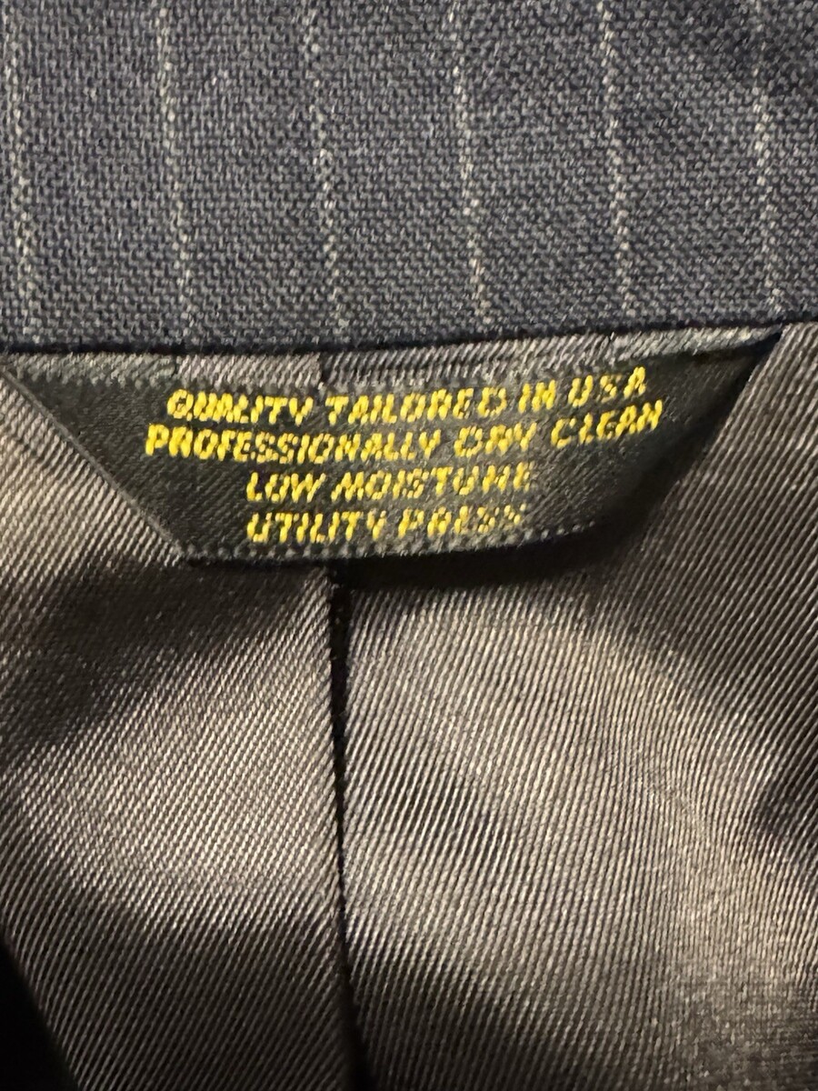 Step into serious vintage style with this John Weitz pinstripe suit ? a rare, USA-tailored heavyweight wool set in an extra-large, hard-to-find size. This is that classic boardroom, gangster-film, power-suit energy in all the right ways.