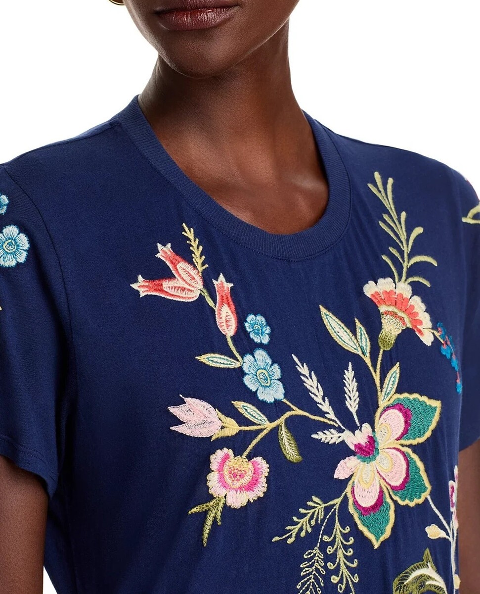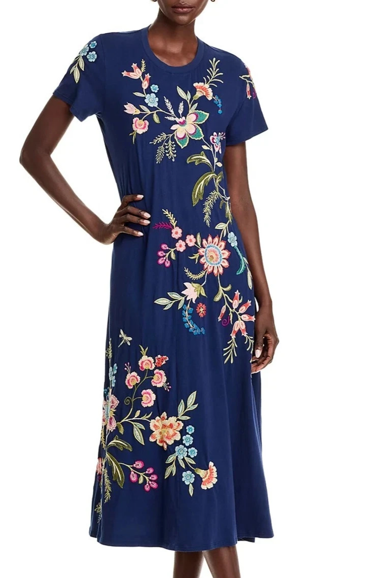 - Johnny Was Julianna Embroidered Swing Dress XL Blue Floral Crewel Midi NWT $198
