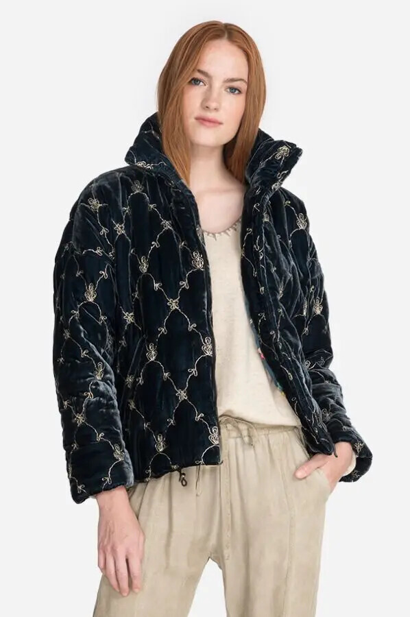 Brand new with tags Johnny Was Zaelia jacket in dark blue with gold metallic embroidery. Velvet like feel puffer with full zip.