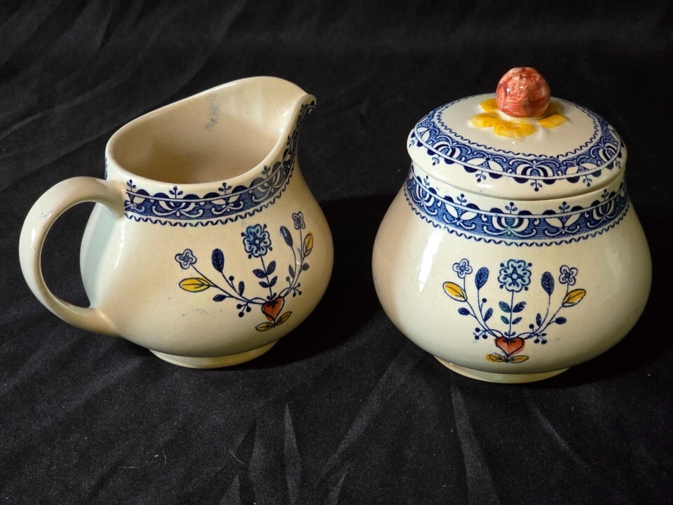 - JOHNSON BROTHERS OLD GRANITE 3-Piece Cream & Sugar Set With Lid HEARTS & FLOWERS