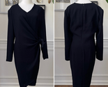 Women?s Jones, New York little black dress with long sleeves and knotted waist perfect for professional use or funerals or anywhere a modest black dress is needed. Lined. Lay flat measures approximately 39 inches shoulder to hem, 21 inches armpit to armpit and 16.5 inches straight across the waist. 19 inches across the hip as the waist is currently knotted but I believe that is a little bit adjustable.