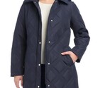 - Jones New York Womens Jacket Navy Blue Quilt Hood Tie Belt Pockets Heavyweight