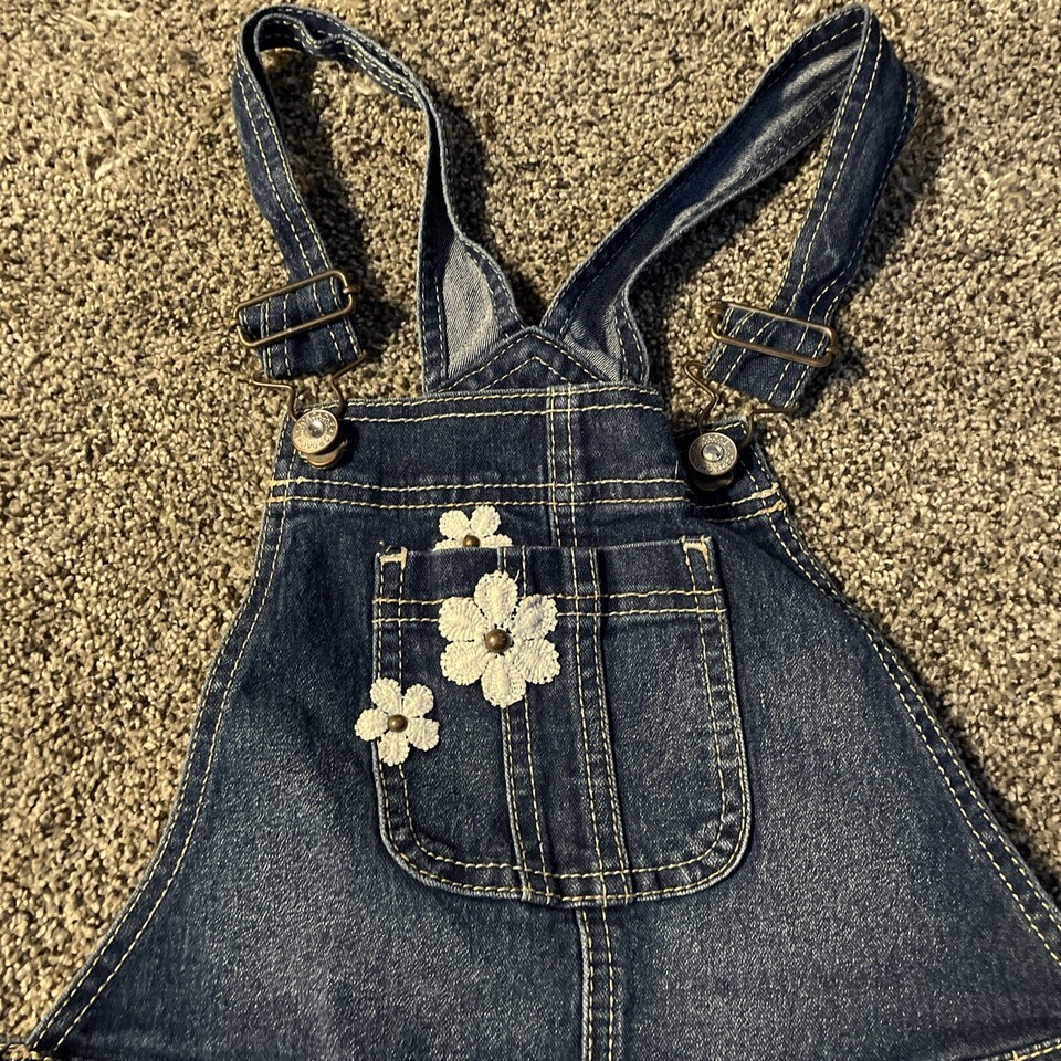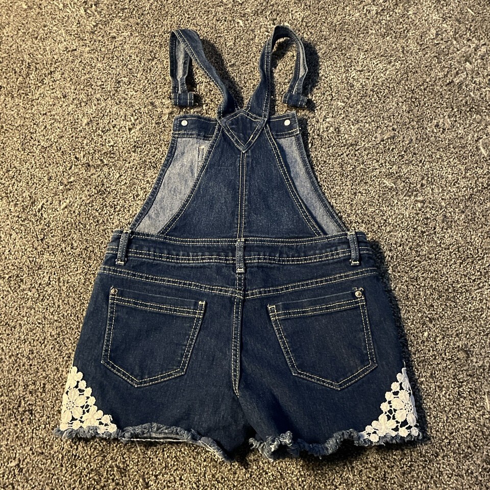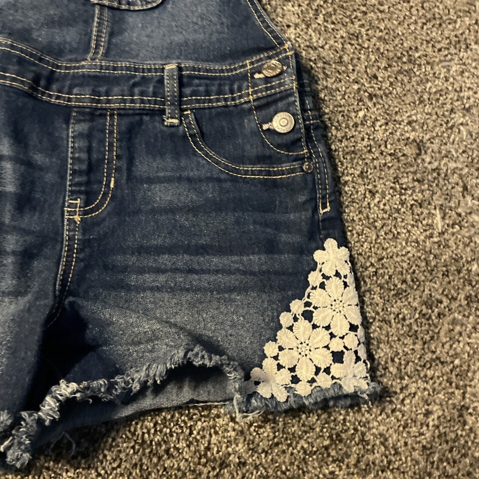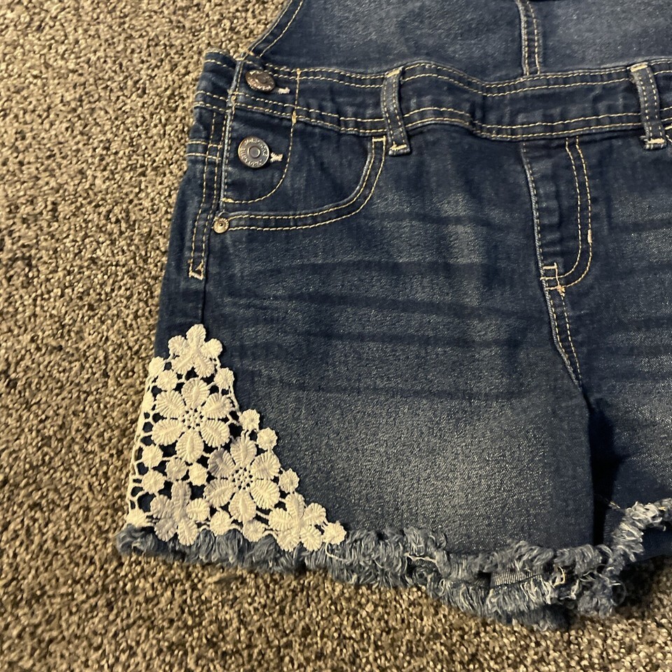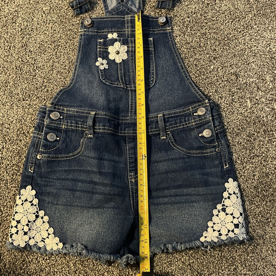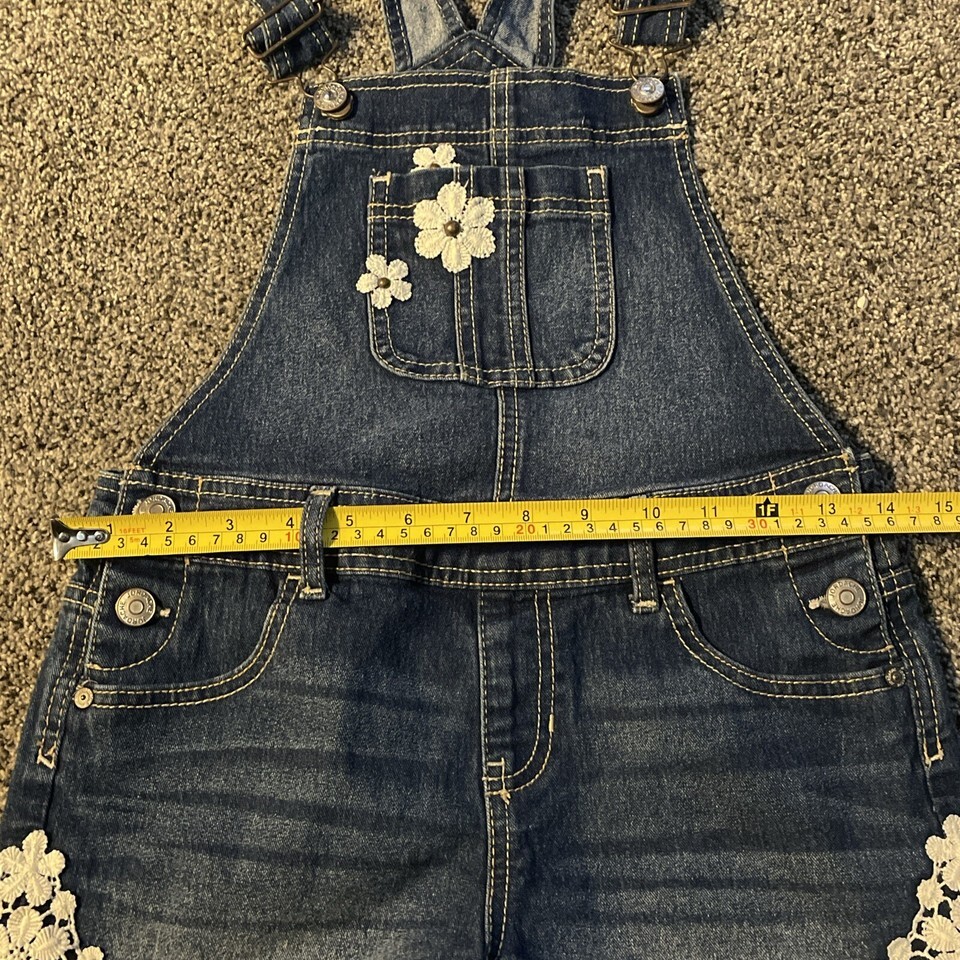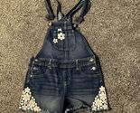 - Jordache Girls L (10/12) Bib Overalls Youth Denim Shorts Flowers Floral Pocket