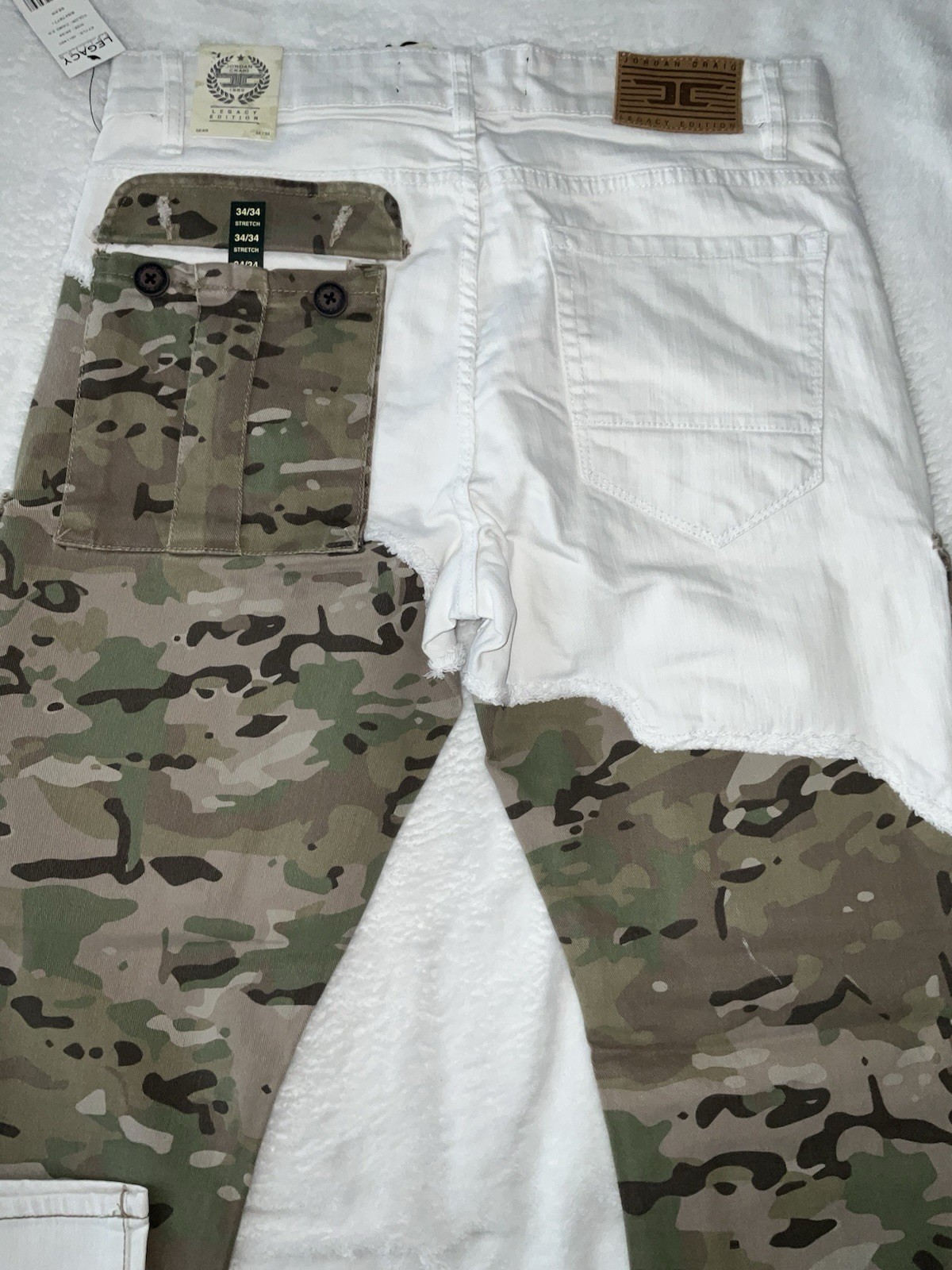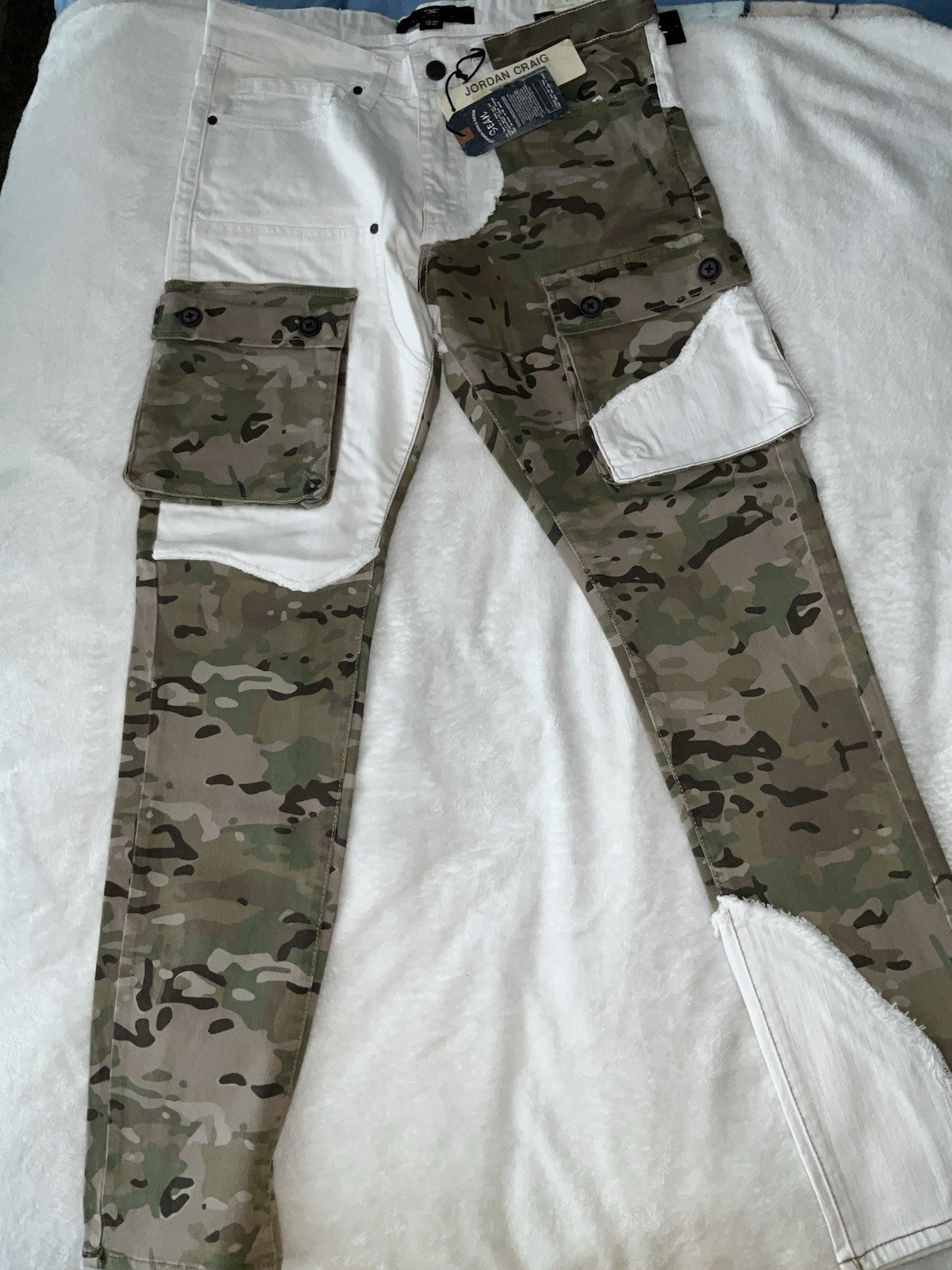 The Jordan Craig Sean Crusade Denim (Camo 2.0) jeans are a stylish and unique addition to any man's wardrobe. Made from high-quality denim fabric, these tapered jeans feature a multicolor camo design, giving them a modern and trendy look. With a regular fit and a 34-inch inseam, these jeans are designed for a comfortable and on-trend style. Perfect for pairing with various tops and shoes, these Jordan Craig jeans are sure to make a statement in any outfit.