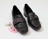 Joseph Seibel Classic loafers are in excellent preowned condition. Great go to shoes for wearing with your casual slacks. There tan contrasting stitching and an attractive antique bronze decorative buckle on the vamp. Lining, soles, and heels all are in excellent condition.