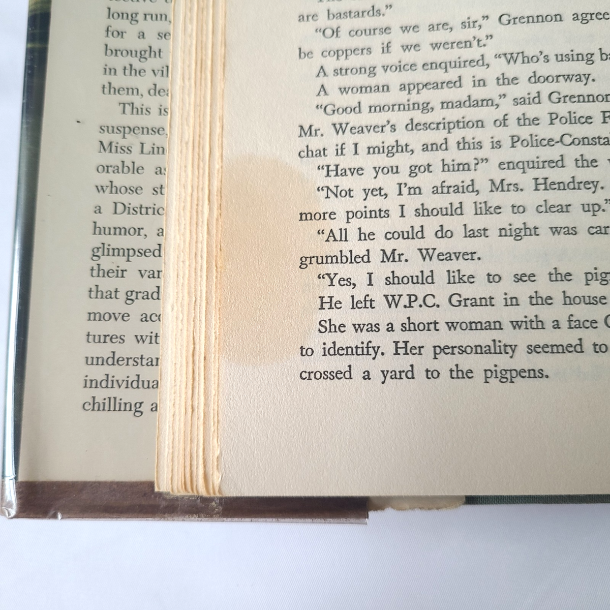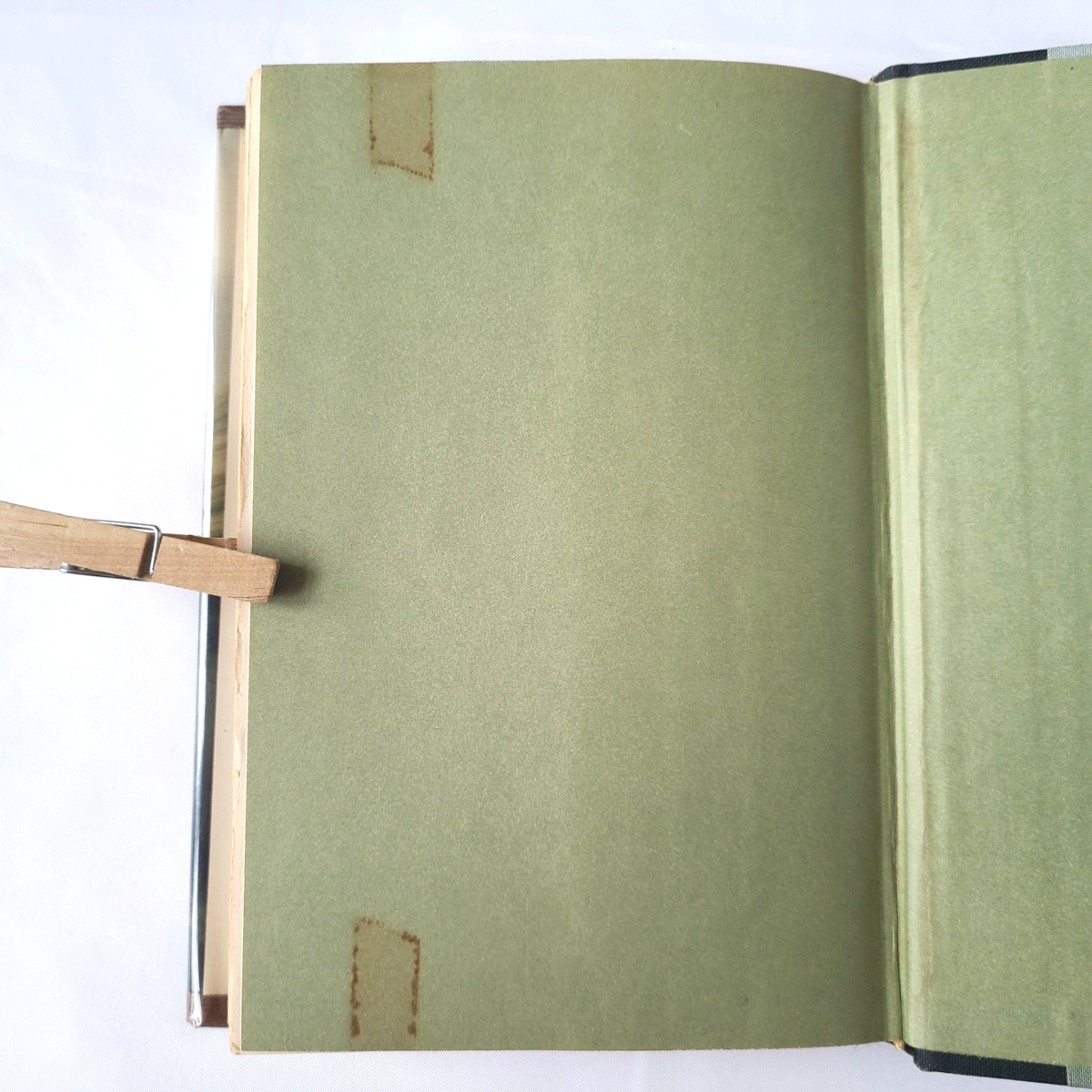 There are tape marks leftover from the last owner taping down the dust jacket. There is staining to the green inside cover pages. Very minor staining to the inside pages. No major flaws. Please view all photos provided!
