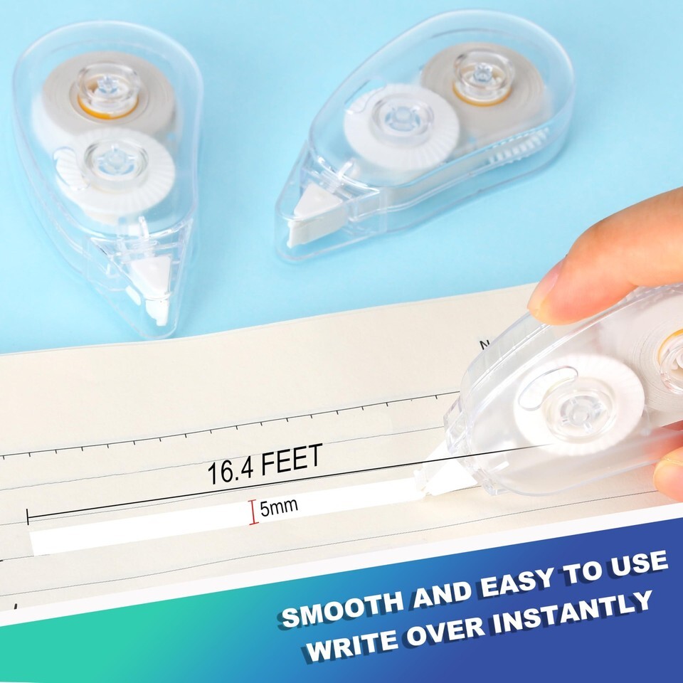 This 26.25-foot white correction tape is ideal for back to school or office supplies. It's a must-have for teachers and students alike, Our correction tape is the perfect partner for your writing corrections!