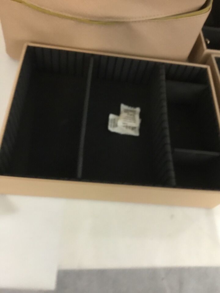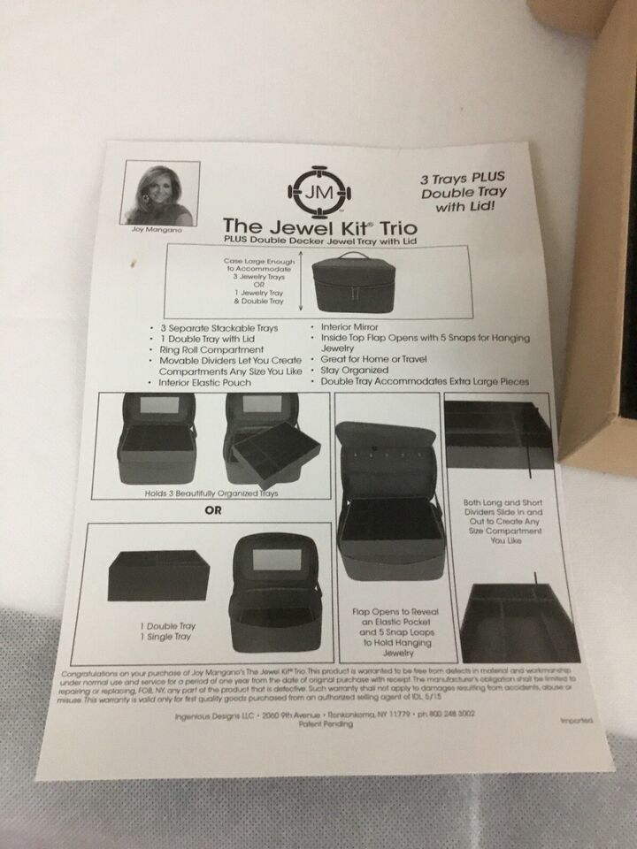 Joy Mangano New Cream Latte, beige, stone Jewel Kit Large Case Organizer Travel Beauty. NWT. Jewel kit is water resistant and can be wiped off. Kit is new in box and never had tags, only insert describing box. This kit is cream and will come with case and 3 stackable trays. The compartments are: