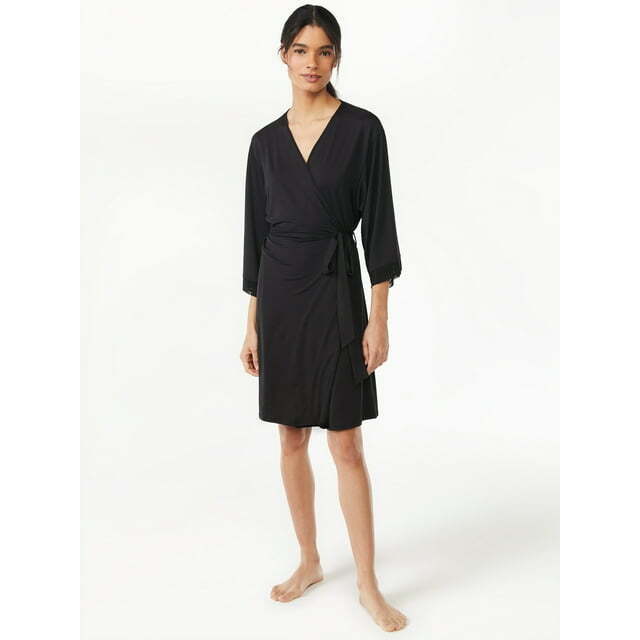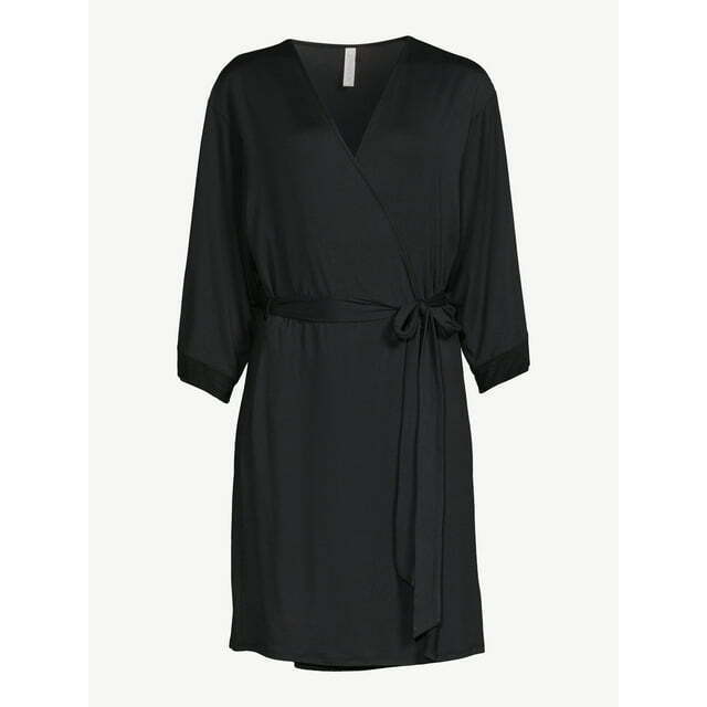 Meet Joyspun. A joyful new spin on Secret Treasures. Exclusively at Walmart. This Knit Robe from Joyspun is cozy, easy to wear and essential to your sleepwear wardrobe. Mesh-trimmed sleeves add an elegant finish to the relaxed wrap style designed with an inside tie and matching belt to ensure the perfect fit. Light and comfortable, it makes a great choice for travel and pairs perfectly with our matching Knit Chemise