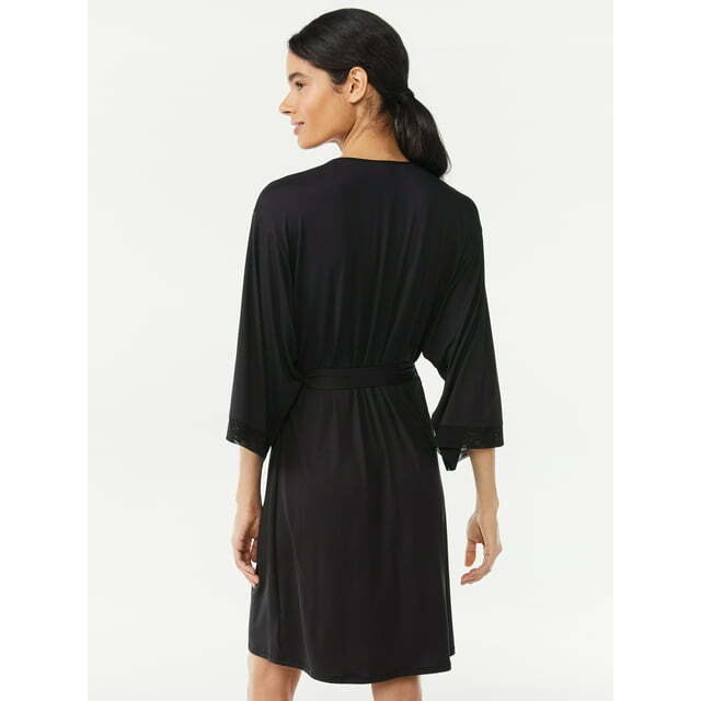 - Joyspun Women’s Sleepwear Mesh Trim Knit Robe, Size 2X-3X Color Black