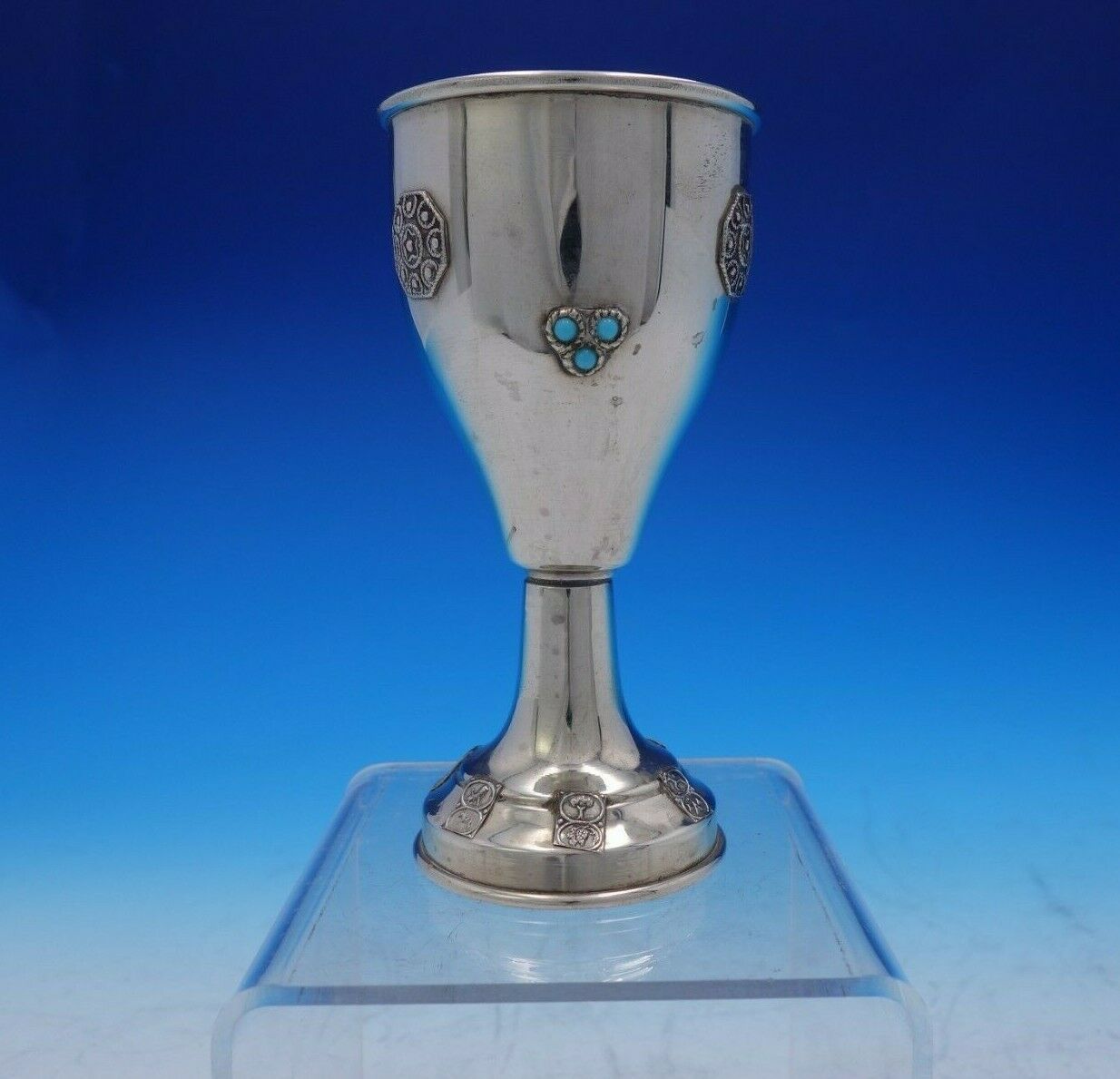 Judaica Sterling Silver Seder Cup with Applied Turquoise Stones GW (#3827)