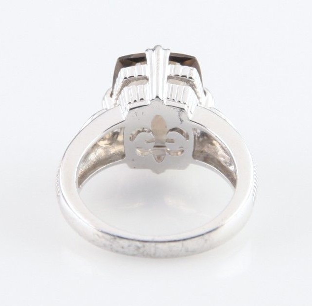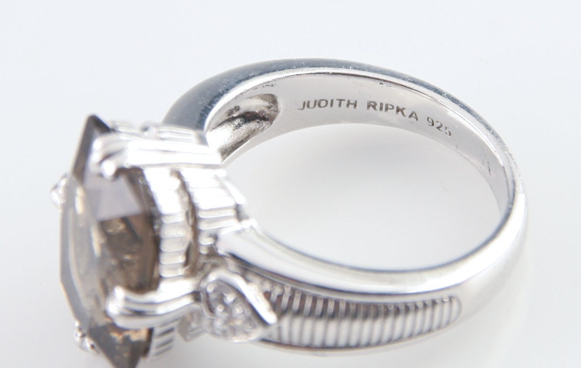 - Judith Ripka Sterling Silver Cushion Cut Smoky Quartz Ring w/ CZ Accents Sz 10