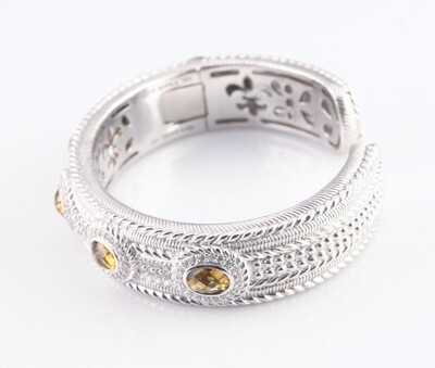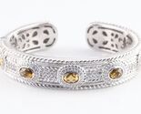 - Judith Ripka Sterling Silver Hinged Cuff Cognac Quartz Bracelet w/ CZ Accents