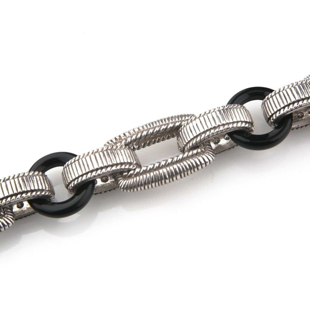 - Judith Ripka Sterling Silver Onyx, Cubic Zirconia, Amethyst Chunky Link Bracelet