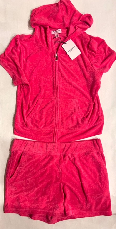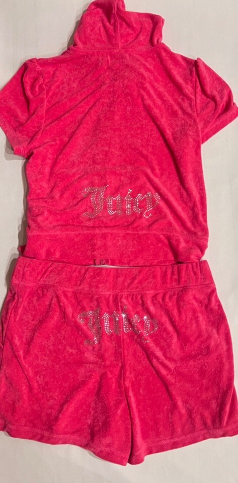 - Juicy Couture Bling Terry Tracksuit Hoodie & Shorts Set Watermelon Pink XL NWT