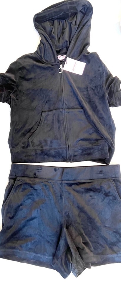 - Juicy Couture Bling Velour Tracksuit Hoodie & Shorts Set Liquorice Black XL NWT