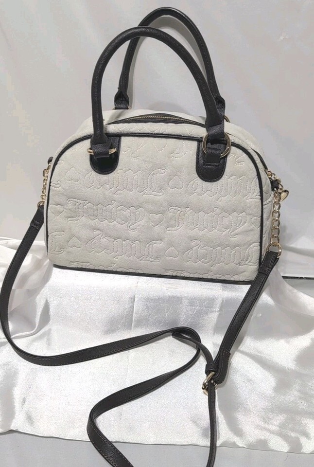 Juicy Couture Vintage Dreams Satchel Handbag ? Angel Chocolate ? Style 11JCPVMXLJA EXCLUSIVE Description: Rare Juicy Couture Vintage Dreams Satchel in the Angel Chocolate colorway, style 11JCPVMXLJA. Features classic Juicy logo hardware, multiple carry options, and a spacious interior?perfect for collectors or everyday use. Item Details: Brand: Juicy Couture Style: Vintage Dreams Satchel Style Code: 11JCPVMXLJA Color: Angel Chocolate Straps: Dual handles + Adjustable shoulder/crossbody strap Material: ? Quilted Velour / Plush Embossed Fabric with: Raised embroidered Gothic lettering Faux-leather (vegan leather) trim and handles Gold-tone hardware Size: 11 x 8 x 4 Closure: Zip Interior: Logo Lining Condition: NEW WITH TAGS Features: Multiple ways to carry: shoulder, handheld, or crossbody Hard-to-find colorway and style Feminine vintage Juicy aesthetic Great for daily wear or adding to a collection ? Shipping Terms Ships within 1 business day from Iowa with love ? Secure packaging for safe delivery ?? 100% Satisfaction guaranteed ? Returns accepted ? Trusted USA seller with 26 years experience selling ??.
