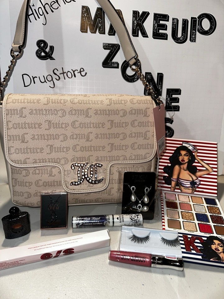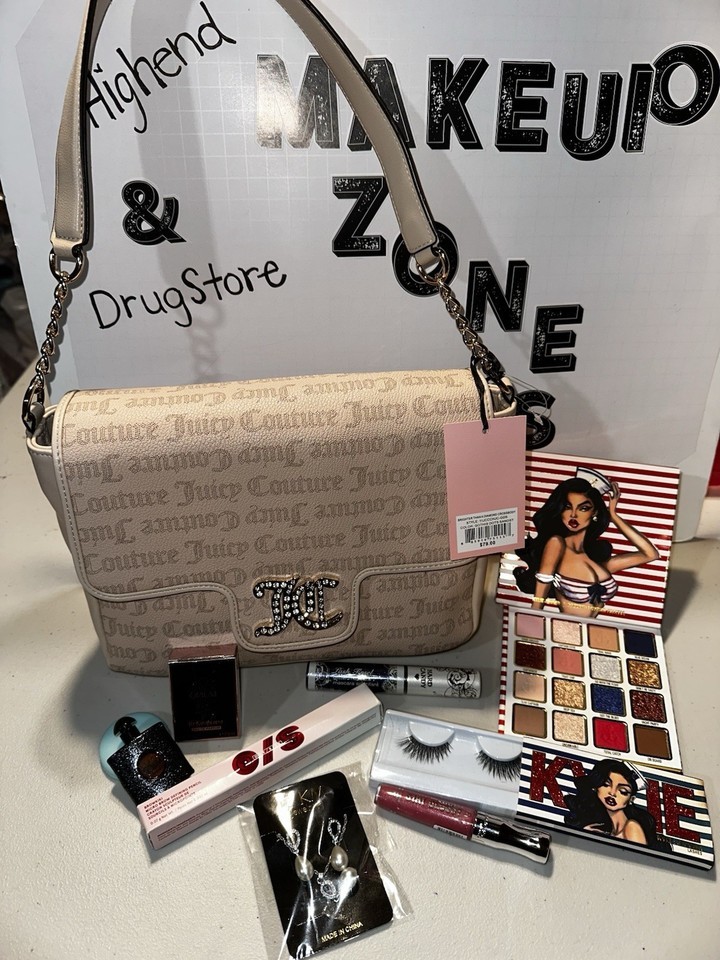 Juicy Culture And Highend Makeup Lot Read Description. Everything is new THE EYELASH BOX HAS SLIGHT DAMAGE BOX ONLY. Everything else is in perfect condition and everything is new never used Kylie Jenner eyeshadow, and eyelashes opium, perfume, and more