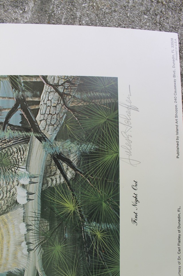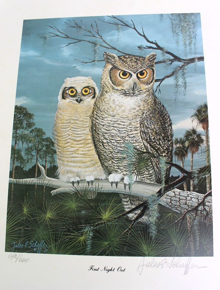 - Jules E. Scheffer 1985 Owl Lithograph "First Night out" Signed Limited Ed