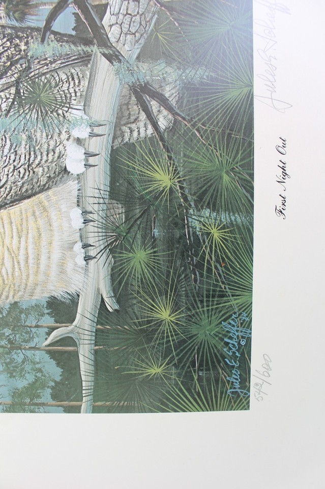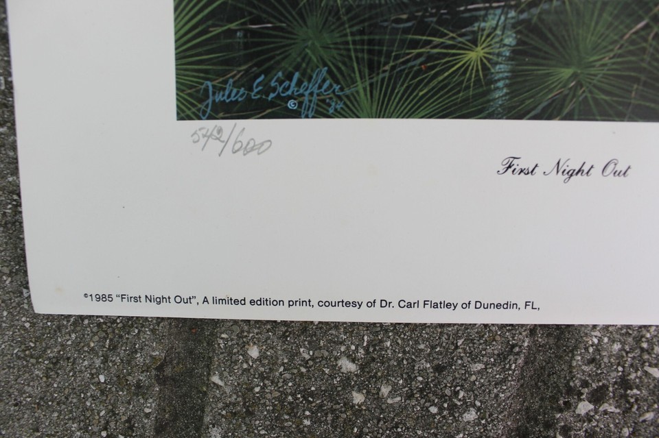 Jules E. Scheffer 1985 Owl Lithograph "First Night out" Signed Limited Edition 542/600.