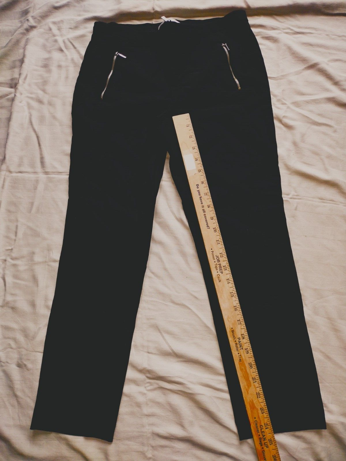 Two faux front pockets with zippers two faux back pockets. (NO POCKETS)