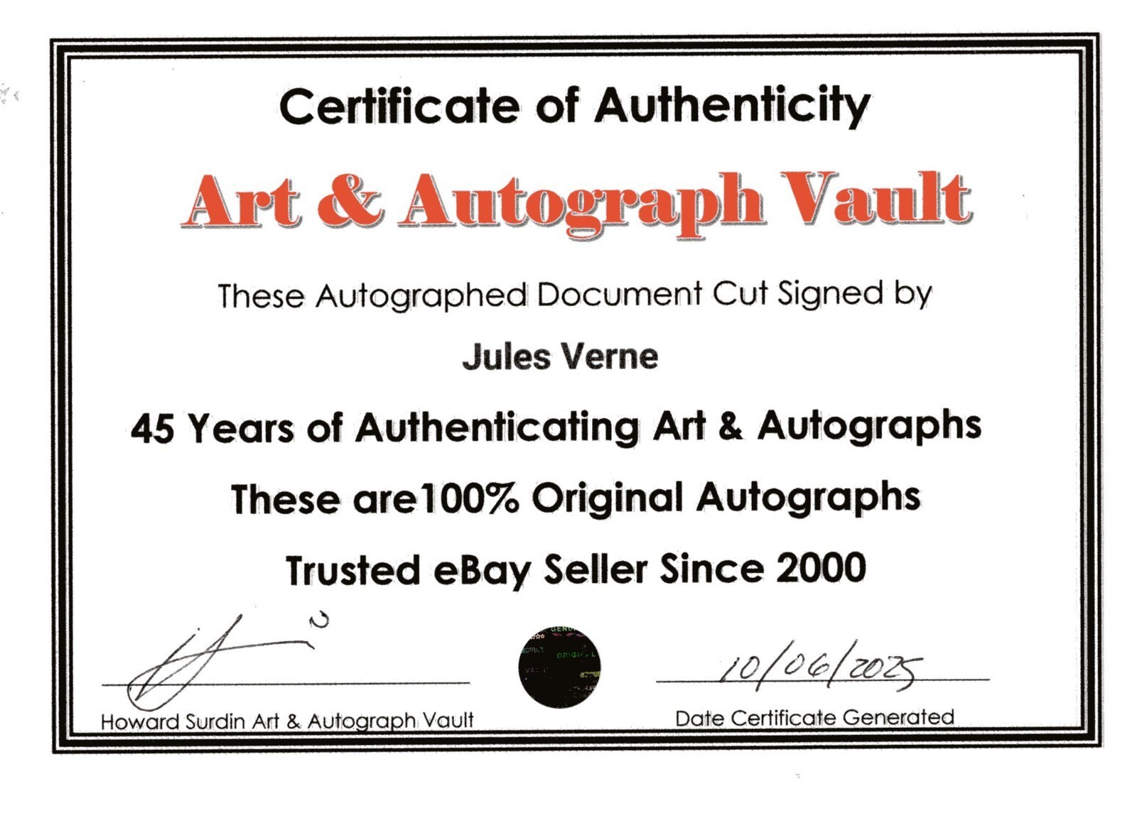 Autograph Authentication: |