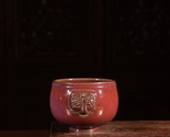 - Jun Porcelain Red Kiln Glaze Tea Cup - Handmade Animal Head Decor Tea Vessel