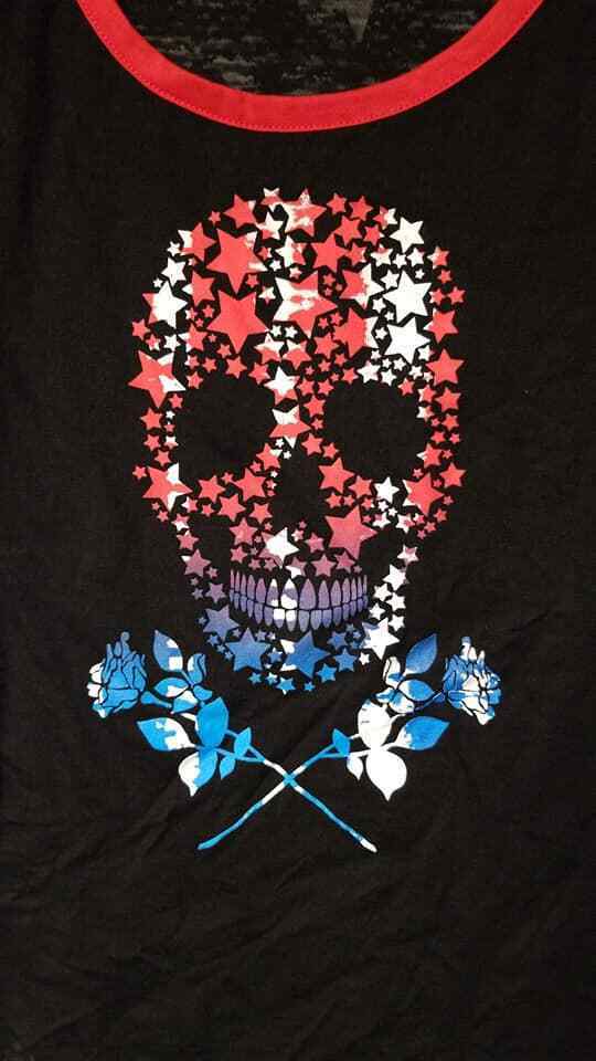 - Juniors Short Sleeve Patriotic Red White And Blue Skull T-Shirt Size M 7-9 Black