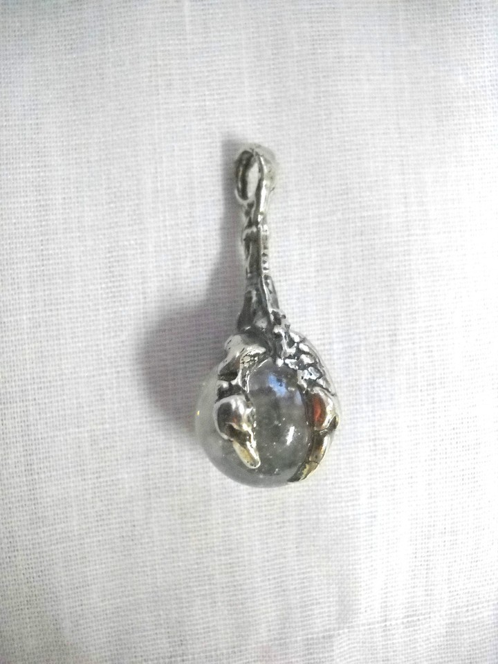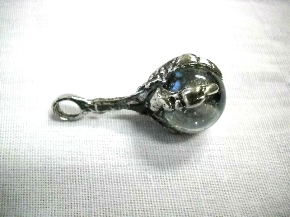 - JURASSIC 3D RAPTOR CLAW w CLEAR GLASS ORB PEWTER PENDANT ADJ CORD NECKLACE